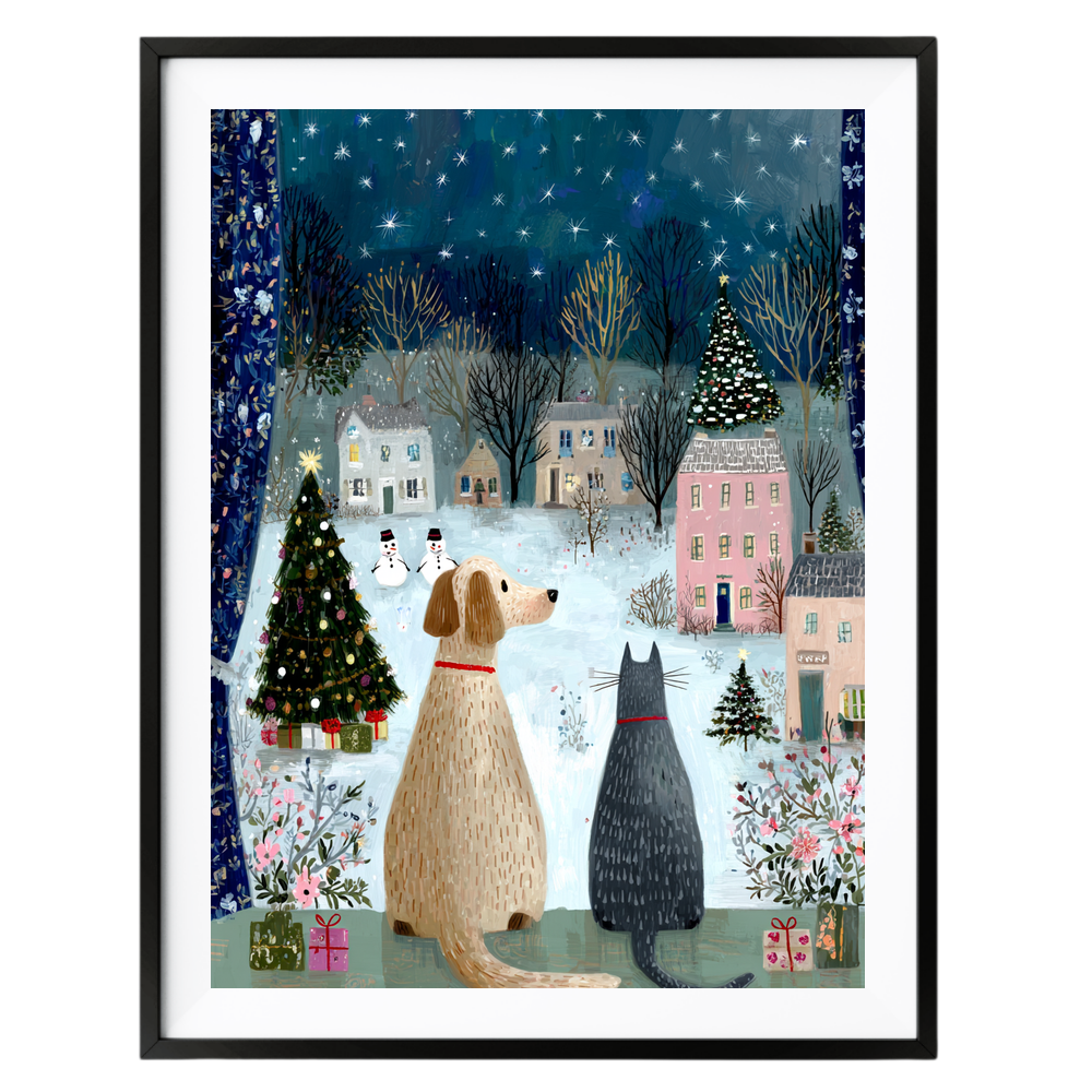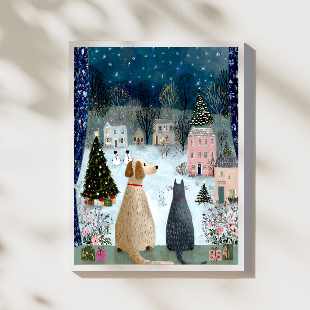 Gift-Friendly: A thoughtful printable holiday artwork for families, pet lovers, and anyone who loves cozy winter aesthetics.